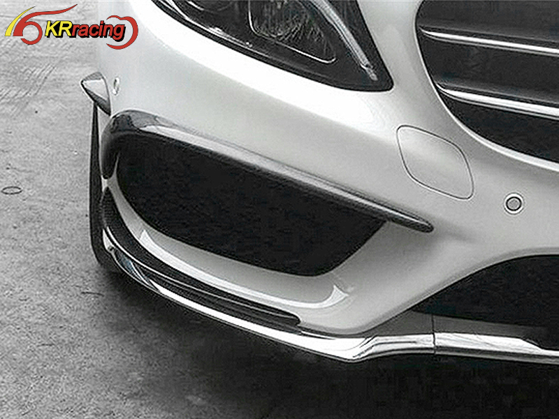 Revozport Style Carbon Fiber Front Bumper Canards For 2015-2016 Mercedes Benz C-Class W205 C180 C200 C260 Sport