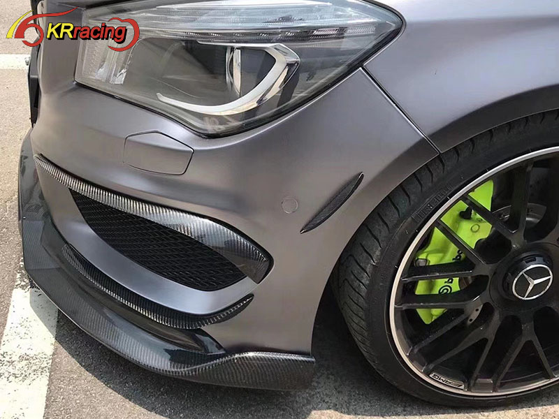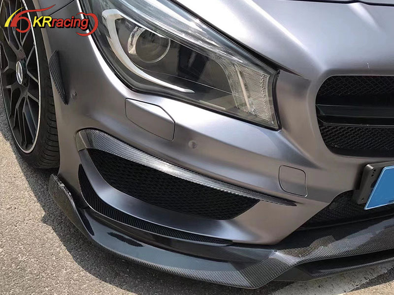Revozport Style Carbon Fiber Front Bumper Canards For 2013-2015 Mercedes Benz Cla-Class W117 AMG Cla250 Cla45